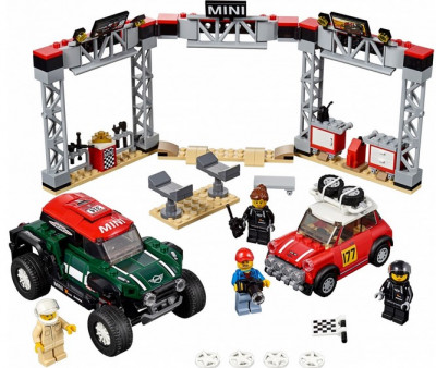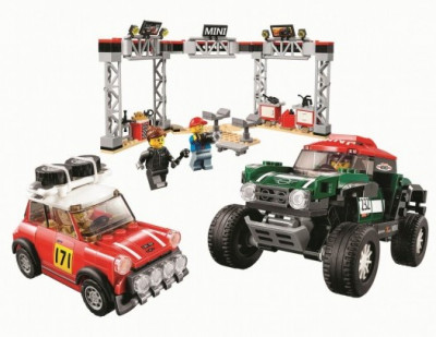 Модель раллийного автомобиля Mini Cooper S образца 1967 года выполнена из деталей красного цвета. Машина оснащена колесами с резиновыми покрышками, дополнительным блоком раллийных фар, установленных на переднем бампере. На крыше автомобиля установлен багажник с двумя запасными колесами. Для удобной посадки минифигурки водителя в салон автомобиля, крыша и ветровое стекло модели выполнены съемными.