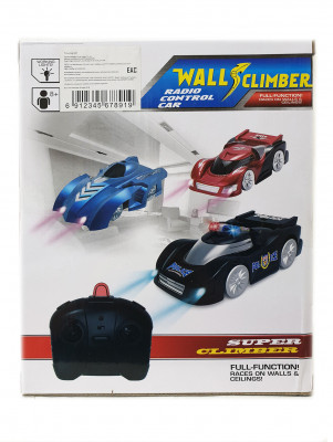 Ее главное отличие от остальных машин на радиоуправлении – это способность ездить не только по полу, но и по стенам и потолку. Антигравитационная машинка бывает 3-х цветов: красный, черный и синий. Материал корпуса – прочный и легкий пластик, при падении с высоты машинка не повреждается. Она очень легкая, вся конструкция максимально облегчена, даже исключены тяжелые батарейки и машинка работает от встроенного аккумулятора. Полного заряда Wall Climber хватает на 15 минут работы а зарядка длится около 40 мин.