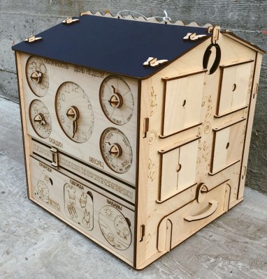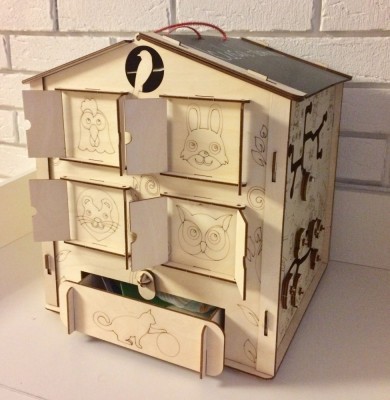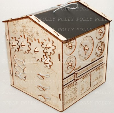 Домик включает 177 отдельных частей, сделанных из фанеры. Элементы крепятся между собой пазами.