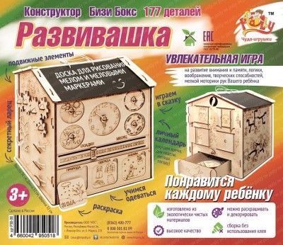 Еще одна деревянная штука бренда Polly - набор для сборки Bizybox "Развивашка"! Bizibox можно собрать самостоятельно без дополнительных средств типа клея, или степлера. Увлекательно собирать домик из частей - это развивает точные движения и логику вашего ребенка.