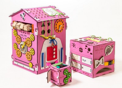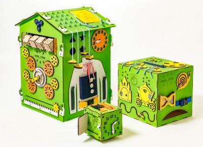 5. 1 Часть крыши - пазл состоящий из 4 частей (у каждого цвета домика разный пазл). Геоборд с резинками с помощью которых можно создавать различные фигуры.