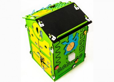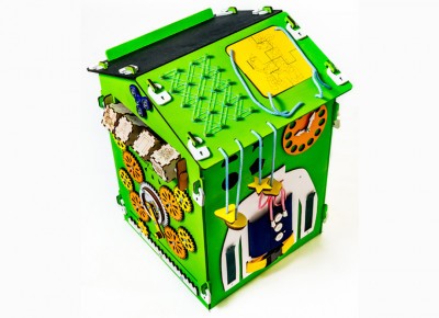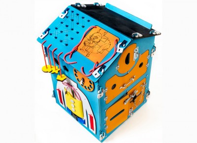 1. Стена с замочками: 5 дверей, 1 форточная задвижка,1 крючок, 1 шпингалет, 1 накладка с навесным замком и ключиком. Все двери открываются наружу. За нижними дверками находится алфавит, который поможет в развитии вашего малыша.