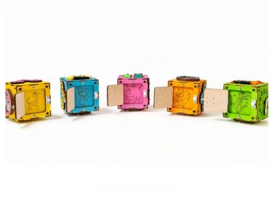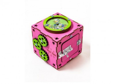 1. Одна из сторон, это сторона с дверцей, закрывающаяся на шпингалет, за которой спрятан один из 5-ти животных (в каждом цвете они разные)