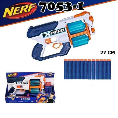 - Для стрельбы бластер использует стандартные стрелы NERF, которые благодаря характерной яркой раскраске, легко найти после игры.