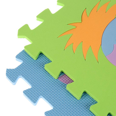 Забавный коврик-пазл, подойдет для игры дома и в детских дошкольных учреждениях. Его также можно использовать в походе и на пикнике, благодаря его мягкости, водонепроницаемости и плотности материала, из которого он произведен. Яркий красочный дизайн коврика увлечет вашего малыша, позволит фантазировать, разовьет чувство цвета и формы, логику и мышление. Коврик надежный и нетоксичный, легок в уходе, соответствует всем мировым санитарно-эпидемиологическим стандартам..