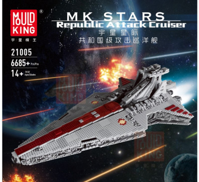 Конструктор «Атакующий крейсер республиканцев класса Венатор» от Mould King (Mоулд Кинг). Полностью совместим с кубиками ведущих брендов. Новое направление дизайнерских разработок. Звёздный крейсер займет достойное, почетное место в вашей коллекции космических кораблей вселенной Star Wars. Собранная вами коллекция плюс немного фантазии — еще больше сценариев и сюжетов для игры.