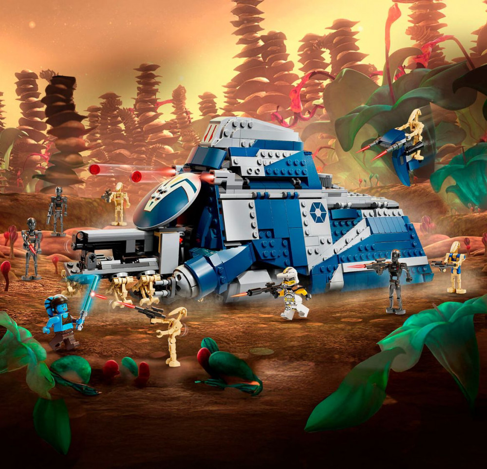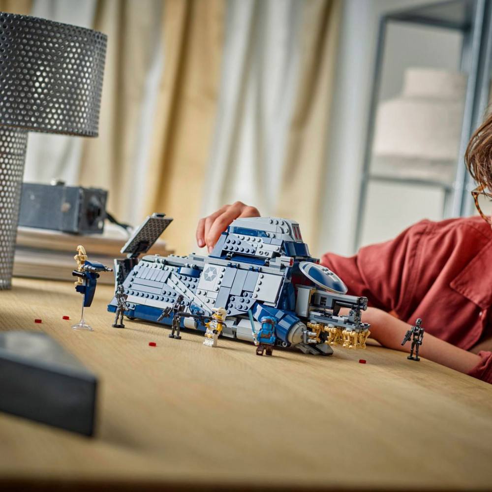 • Готов к действию: MTT оснащен скрытыми колесами для плавного хода, кабиной пилота, 2 шутерами, спидером STAP в заднем отсеке и откидывающимися боковыми панелями для доступа к деталям интерьера.