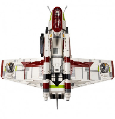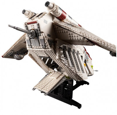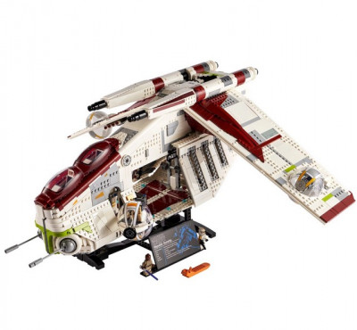 Воспроизведи битву на Джеонозисе из “Войн клонов”, которая произошла из-за напряженных отношений между Республикой и Конфедерацией независимых систем. Купи в нашем интернет-магазине набор и собери из его деталей модель боевой десантной канонерки Республики с аутентичными элементами.