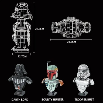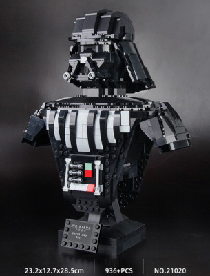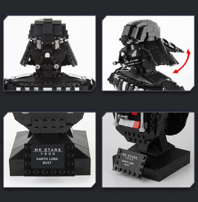 В конструкторе есть детали, из которых удастся собрать бюст Дарт Вейдера. Он выглядит реалистично и действительно напоминает известного злодея. Процесс сборки будет интересен даже взрослым людям. Если человеку нравится Дарт Вейдер, тогда и этот конструктор будет интересен.