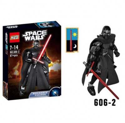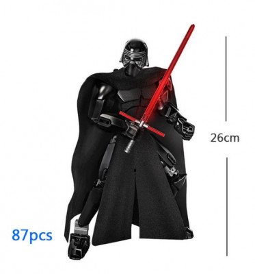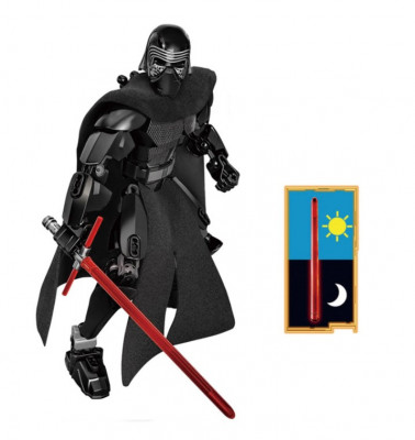 Из деталей набора Вы сможете создать боевую фигуру Кайло Рена. Его тело покрывают бронированный пластины чёрного цвета, а за спиной развивается длинный матерчатый плащ. Лицо скрывает защитная маска с оригинальным рисунком. В руках Кайло сжимает личный световой меч, ставший его визитной карточкой. Благодаря шарнирному строению туловища, Кайло способен реалистично двигаться, вращать головой и принимать боевые позы, не теряя при этом равновесия. Для участия в дуэлях можно воспользоваться специальным вращательным механизмом, закреплённым на спине героя. Он связан с руками, что позволяет делать выпады и взмахи мечом.