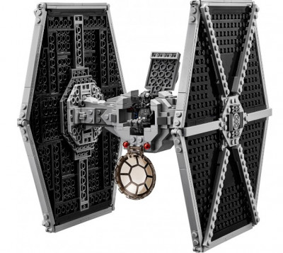 Из деталей набора Вы сможете собрать модель Имперского истребителя TIE. Его фюзеляж выполнен в классическом серо-чёрном цвете. Центральное место отведено сферической кабине, прикрытой круглым тонированным стеклом. Опустив стекло и подняв бронированный потолочный люк, можно заглянуть внутрь и рассмотреть интерьер. Здесь есть место для одного пилота, управляющего кораблём с помощью подвижного штурвала.