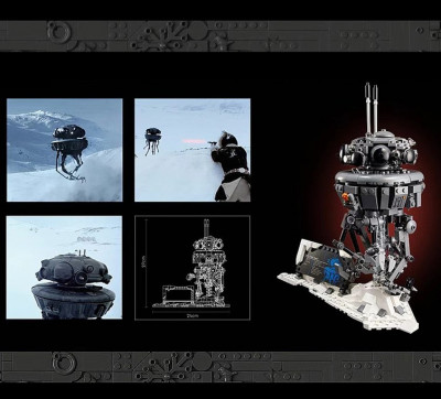 Имперский разведывательный дроид полностью соответствует своему прототипу из фильма. Верхняя часть подробно детализирована и реалистично воспроизводит оптику, осветительные приборы, видеокамеры, бластер. Наверху крепятся две антенны. Шесть механических конечностей оснащены разным количеством подвижных соединений, а также инструментами для исследования поверхности планеты: буром и различными захватами.