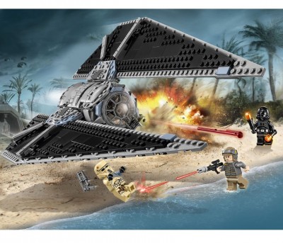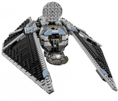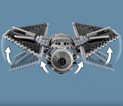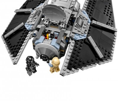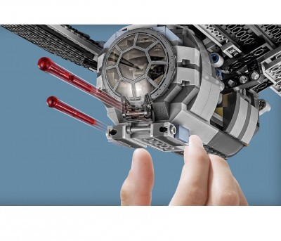 В наборе Вы найдёте детализированную модель ударного имперского истребителя. Его корпус выполнен из элементов серых оттенков. Центральное место в конструкции занимает кабина пилота. Как и предыдущие модели серии TIE она прикрыта круглым лобовым стеклом с увеличенным обзором. Подняв его, можно заглянуть внутрь и рассмотреть кресло пилота и рычаги управления. Кроме того кабина оборудована открывающимся потолочным люком, защищённым бронированными панелями, и двумя шутерами установленными под лобовым стеклом.