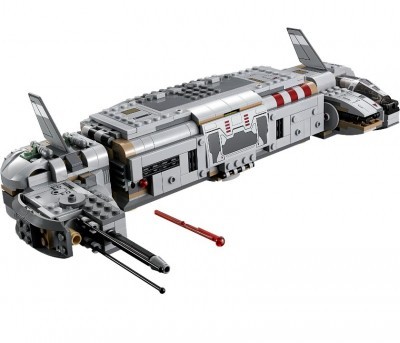 Боевой транспортник имеет запоминающуюся вытянутую форму. В центральной части расположен командный пункт с тремя посадочными местами и приборной панелью. Попасть в командный пункт можно опустив боковую стену, которая выполняет роль пандуса. Правая часть корабля отведена под кабину пилота, а левая – под склад боевого и навигационного оборудования. Для удобства сборки и игры, крышу корабля можно раскрыть.