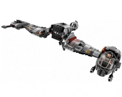 В правой части спидера расположена бронированная кабина. Она зарыта тонированным ветровым стеклом. Крыша открывается, и вы можете посмотреть внутрь и внимательно изучить место пилота и приборную панель.