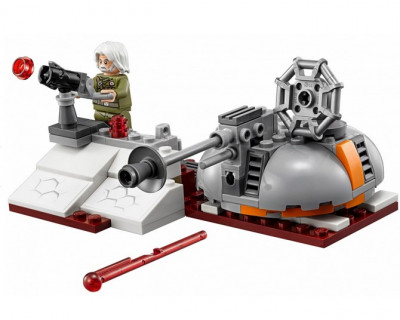 В наборе есть всё, чтобы собрать модель лыжного спидера Сопротивления. Он выкрашен в серый цвет с добавлением бордовых и бежевых оттенков. Репульсорный двигатель находится в центре конструкции. Оснащённый антигравитационной технологией, он позволяет спидеру летать над планетами на очень высоких скоростях. Стойка стабилизатора установлена под двигателем, именно она отвечает за равновесие и манёвренность устройства.