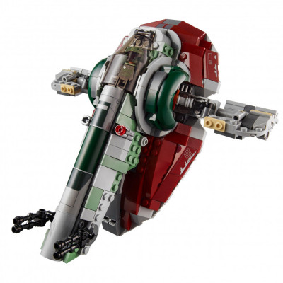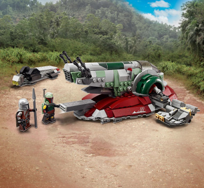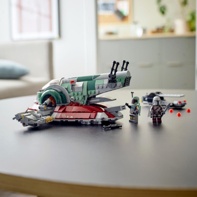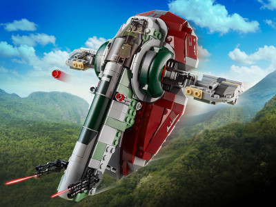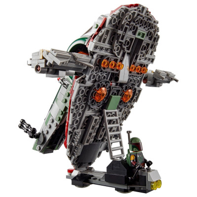 Соберите знаменитый звездолет Бобы Фетта и разыгрывайте захватывающие приключения вместе с Мандалорцем! Залезайте в кабину пилота и отправляйтесь на охоту за беглецами. Стреляйте из шипомета, наведите на врагов вращающиеся спаренные бластерные пушки и заморозьте их в карбоните. Приземлитесь на Тайтоне и используйте транспортер для перемещения звездолета (или выставьте его напоказ в вертикальном «полетном» положении).