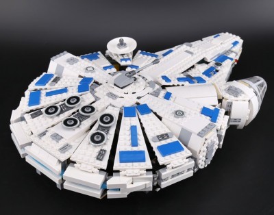 Разработчики конструктора постарались на славу и продумали каждую деталь. Корпус корабля собирается из деталей белого и серого цветов с добавлением синих элементов. Сегменты основного корпуса можно распахнуть и насладиться внутренним интерьером Сокола.