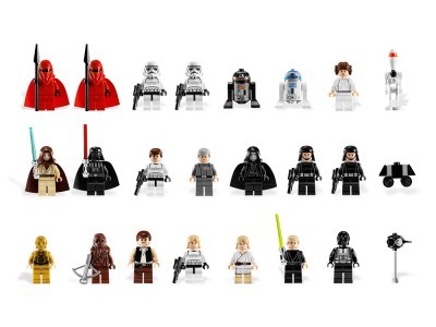 В комплект входят 24 фигурки персонажа, в том числе Дарт Вейдер, Люк Скайуокер, Хан Соло, принцесса Лея и многие другие.