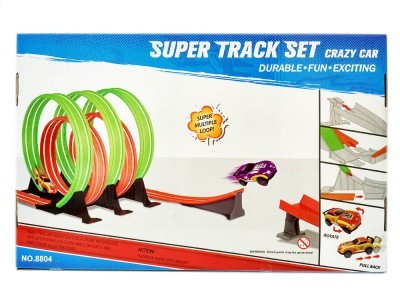 Из добротных  и аккуратных деталей, ребенок сможет построить трек с характерными изгибами трассы, кольцами и виражами, которые он точно встречал в игре и мультфильме про машинок-гонщиков. Детали легко и прочно скрепляются друг с другом и сделаны из основательной пластмассы.