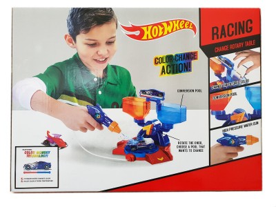 В набор входит база с автомойкой, пистолет для мойки и 2 бассейна для мытья машинки. Наполните бассейны холодной и горячей водой и увидите как машинка меняет цвет при погружении.