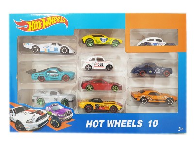 Десять машинок готовы принять участие в гонках Хот Вилс. Их колеса быстро вращаются, корпус обладает идеальным весом и формой, чтобы набирать высокую скорость. Машинки ударопрочные.