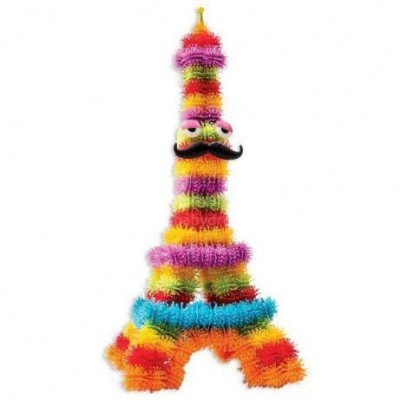 Детали конструктора – мягкие цветные липучки, который напоминают колючки репейника. Сцепляя шарики между собой, можно создавать настоящие игрушки, машинки, шкатулки, аксессуары и всё, на что хватит фантазии у ребенка.