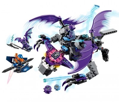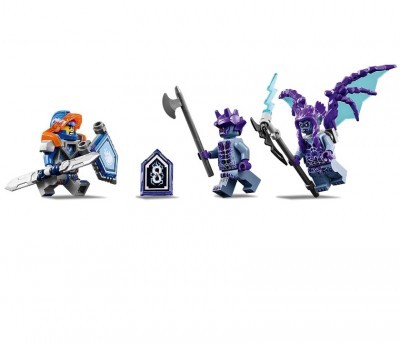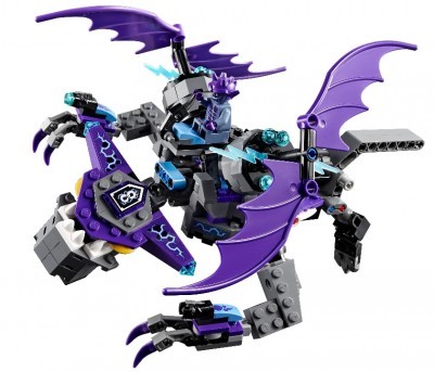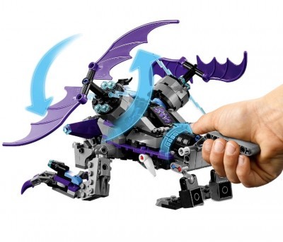 Из деталей набора Лего 70353 Вы сможете собрать летающую горгулью. Её тело состоит из серо-фиолетовых элементов с добавлением наклеек в виде молний. Спереди видна массивная голова с жёлтыми злобными глазами, клыкастой открывающейся пастью и двумя рогами в виде голубоватых кристаллов. Между ними устроено крепление для щита с Запретной Силой.