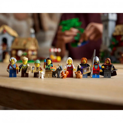 В набор входят 8 минифигурок: городской стражник, придворный шут, мошенник, плотник, сборщик налогов, охранник башни кузнеца и горожане.