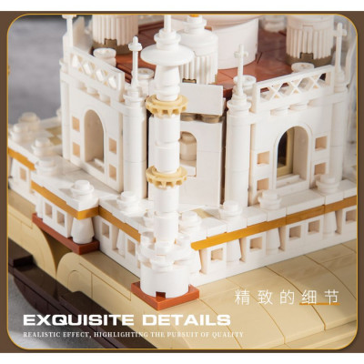 "Детский конструктор Волшебная книга «Тадж Махал» - высококачественный конструктор, полностью совместим с другими известными конструкторами. Если вам нравится красивая архитектура, то развивающий конструктор «Тадж-Махал» – именно то, что вам нужно. Сборный конструктор перенесет вас в сказочную Индию, к одной из самых красивых достопримечательностей на земле – Тадж-Махалу. Этот Мавзолей, в котором навсегда упокоились Мумтаз и Шах-Джахан, – одно из главных чудес света и необыкновенная история любви. Высокие минареты, чатри, главный купол, айваны, центральный покой с кенатафами, склеп с гробницами точь-в-точь напоминают детали настоящего мавзолея. Классный конструктор погрузит вас в интересный процесс строительства и подарит вам незабываемые впечатления.