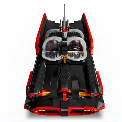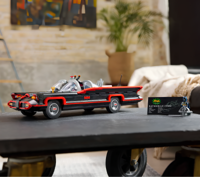 Набор создан по мотивам культового бэтмобиля из телешоу 1966 года. Автомобиль имеет литое лобовое стекло, поворотные колеса, аутентичные украшения и открывающийся багажник, в котором находится бэткомпьютер.