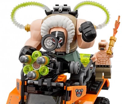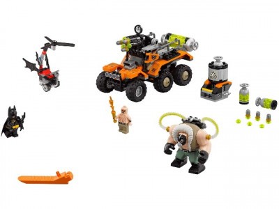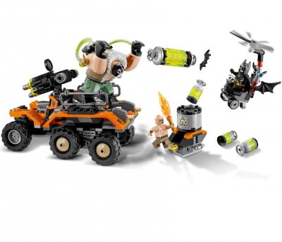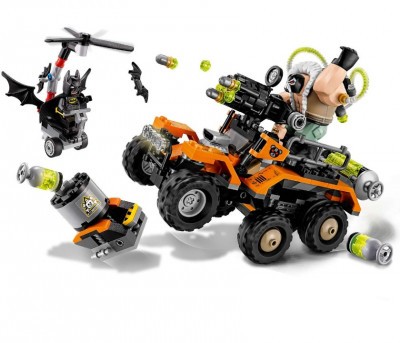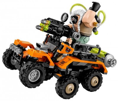 Из деталей конструктора вам предстоит собрать внедорожник злодеев. Его корпус собирается из ярко-оранжевых и серых деталей. На решетке радиатора установлены 4 мощных прожектора, чтобы освещать самые темные закоулки Готэма. Ход внедорожника обеспечивают три пары колес с фактурными рифленными шинами. Задний бампер имеет специальные крепления для химической бомбы. Ах да, мы чуть не забыли самое важное! В передней части внедорожника над лобовым стеклом установлена шестизарядная пушка, способная вести прицельный огонь.