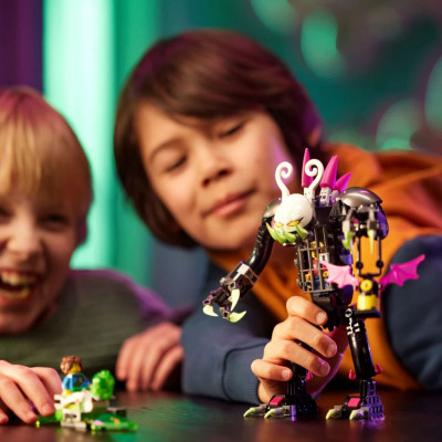 Конструктор «Монстр с клеткой» — высококачественный конструктор из 282 деталей в собранном виде имеет размер 21*16*10 см. Добро пожаловать в Мир Грез (Охотники за мечтами)! Постройте Z-Blob и трансформируйте его в ховербайк или мини-самолет, чтобы помочь Матео спасти своего друга Куперу из ходячей тюрьмы. У главного Хранителя Короля Кошмаров злодейского Гримкипера подвижны все конечности, а в груди оборудована очень надежная клетка. В набор входят 2 минифигурки персонажей: Матео с копьем и часами, Купер в красной куртке.