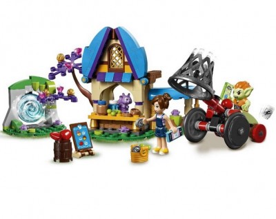 Из этого конструктора вы соберёте прекрасную продуктовую лавку мистера Спая. Она состоит из коричневых и бежевых деталей. Крыша выкрашена в приятный голубой цвет. Под самой крышей есть маленький чердак с небольшим окном. Там находится спальня Спая, хозяина магазинчика. Обстановка внутри скромная и приятная: в комнате есть кровать и подсвечник, который хозяин использует как ночник.