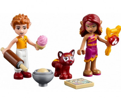 Посмотрите, как нарядна и изящна пекарня! Она состоит из деталей бежевого и розового цвета, украшением ей служат драгоценные камни. Около двери есть специальное окошко, где можно получить заказ. Заглянем внутрь? Кухня очень светлая и аккуратная. Там есть стол для замешивания теста и, конечно, печка. Печка не простая - под ней течёт река из лавы. Это облегчает Азари и Джонни работу: им не приходится использовать дрова для топки. Можно просто поставить противень в печь, и через каких-то несколько минут прекрасная выпечка будет готова.