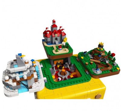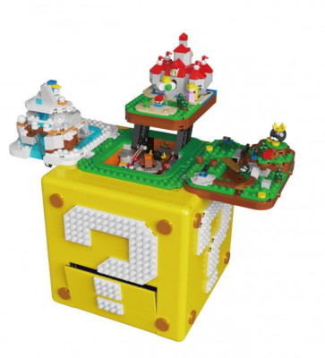 В собранном виде конструктор представляет собой большой желтый кубик с выпуклым знаком вопроса. Нажав на верхнюю часть куба, вашему взору откроется несколько локаций, являющихся стандартными для видеоигры. Это будут детализированные, очень реалистичные и всенепременно узнаваемые объекты, без которых нереально представить полноценный игровой процесс.