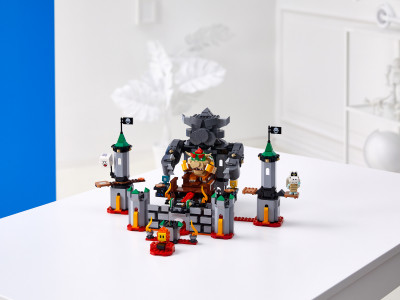 - Этот набор включает в себя фигурки Боузера, Купы-скелета, Бу и пузыри лавы, модели башен замка с вращающимися и дрожащими платформами, блоком со знаком вопроса и блоком времени и множество других элементов для захватывающих игр.