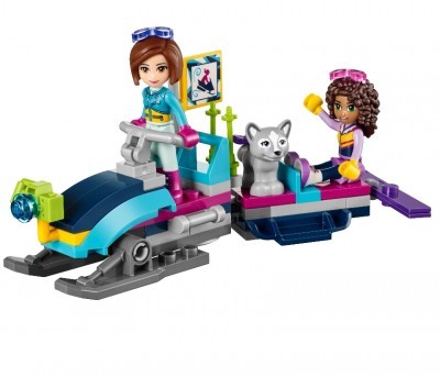 В наборе вы также найдете детали для создания снегохода, держателя для лыж, две фигурки подружек (Эми и Андрея) и питомец – щенок Хаски.