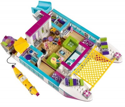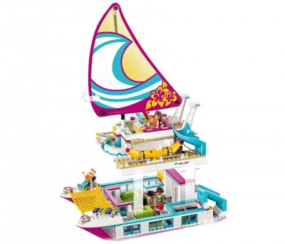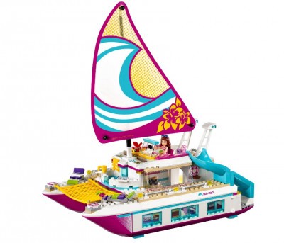 В летний жаркий день что может быть приятней морской прогулки на катамаране по побережью Хартлейк Сити?! Давайте соберем невероятное судно Саншайн из деталей констуктора и поиграем с друзьями из мультика Лего Френдс.