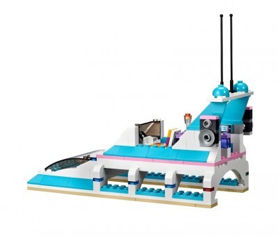 На радость подружкам в задней части лайнера есть водная горка, откуда можно скатываться прямо в море. На борту также установлены динамики, с помощью которых можно слушать музыку. В набор также входят детали для создания водного байка и небольших водных лыж.