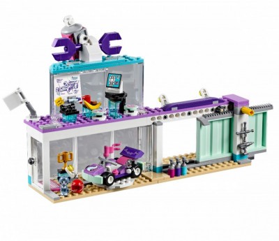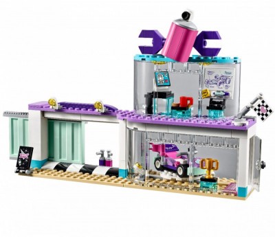 Юные гонщики Heartlake City любят заезжать в мастерскую Дина. Здесь вы можете найти множество классных аксессуаров для тюнинга и с их помощью сделать гоночные карты уникальными и запоминающимися. В просторном гараже есть покрасочная мастерская с разноцветными пистолетами. Они позволяют менять цвет отдельных частей тела и создавать новые стильные сочетания. Розовый бампер, синий капюшон или оранжевый спойлер будут выглядеть эффектно во время соревнований, особенно если вы добавите к ним специальные эффекты в виде вспыхивающего огня или водяных пушек.
