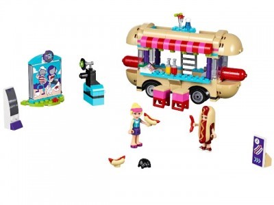 В набор входят: 2 фигурки (Стефани и Нейт), ростовой костюм хот-дога, и много аксессуаров (гриль, булочки для хот-догов, сосиски, кулинарные щипцы, кетчуп, горчица, бутылка с водой, стакан для коктейлей, вишенки, кассовый аппарат, денежная банкнота, 2 барных стула, стол, 4 пуфа, фотокамера, кривое зеркало и стенд для фотографирования с 2 отверстиями для лиц куколок).
