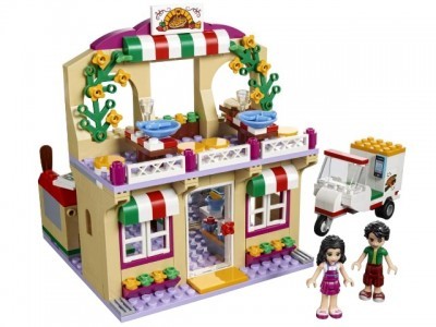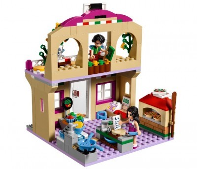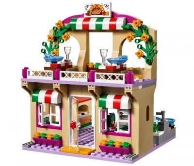 Построим знаменитую пиццерию из деталей этого конструктора? Фасад здания собирается из бежевых деталей и украшен вьющимися растениями. Над окнами установлены полосатые тенты ярких расцветок, которые встречаются на флагах Италии.