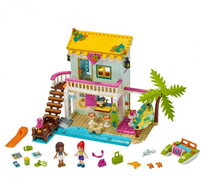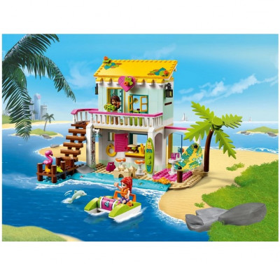 Конструктор снабжен огромным количеством тематических аксессуаров: гамак, пальмы, замок из песка, посуда для коктейлей, высокие барные стулья, фламинго и дельфин, гироскутер, фотоаппарат, ласты, мобильный телефон, чемодан на колесиках, спасательный круг, надувные жилеты, доска для серфинга и многое, очень многое другое.