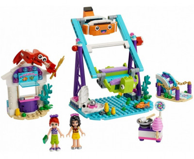 Подводная карусель — это конструктор для активных девчонок, любящих весело провести время. Две подружки, Мия и Вики, решили прогуляться в невероятном парке аттракционов в морском стиле. Уже при входе их встречает необычный киоск по продаже входных билетов. Радужная касса украшена разноцветными огоньками, на крыше которой сидит огромный краб, встречая юных гостей. Входной билет куплен, можно начинать веселиться.