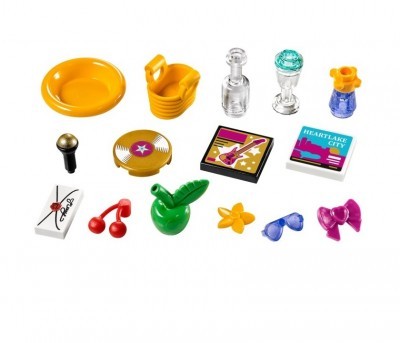 В набор также входят детали для создания концертной площадки, шезлонги и столик с напитками, а также три фигурки с аксессуарами (Ливи, Стефани, Мия).