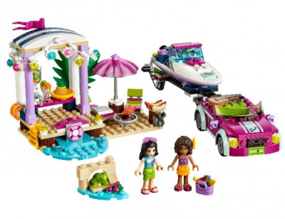В наборе входят 2 куколки: Андреа и Эмма, фигурка черепашки и множество аксессуаров для игры: ананас, арбуз, банан, вишенки, 2 хот-дога, 2 бокала, корзинка, гитара, газета, спасательный круг, 2 спасательных жилета, водные лыжи, очки и украшение для волос.