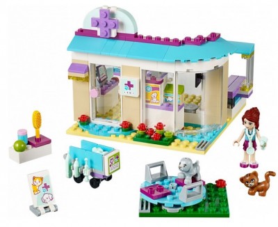 В наборе Вы найдёте фигурку Мии и её питомцев, а также множество аксессуаров, таких как: эмблема ветеринарной клиники, рекламный стенд, часы, весы, компьютер, монитор, карта пациента, мячик, расчёска, медицинская тележка, склянки с лекарством, стетоскоп, отоскоп, шприц, градусник и корма для животных.