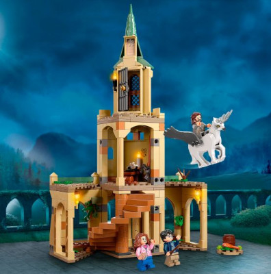 Спасательные полеты в Хогвартсе Этот универсальный игровой набор основан на запоминающихся сценах из фильма. Он включает в себя минифигурки трех культовых персонажей - Гарри Поттера, Гермионы Грейнджер и Сириуса Блэка, а также гиппогрифа Клювокрыла. У Клювокрыла подвижные крылья, а на спине есть место для пассажира-минифигурки. Тюремная камера высоко на башне Хогвартса становится сценой для дерзкого побега, и здесь есть знаменитая скоростная метла Гарри Огненная вспышка, чтобы дети могли отправиться навстречу очередному волшебному приключению! Этот модульный набор соединяется с другими наборами серии, чтобы создать целый замок Хогвартс.