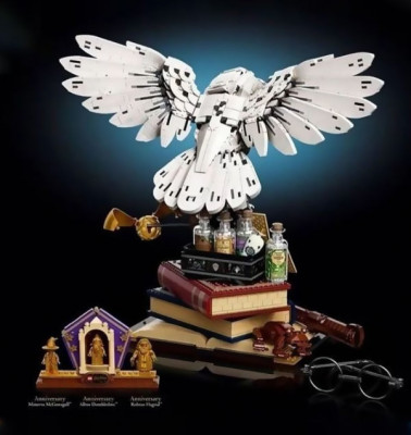 В комплект входят золотые минифигурки преподавателей: Альбуса Дамблдора, Рубеуса Хагрида, а также Минервы Макгонагалл. Есть и юбилейная подставка, украшенная эксклюзивной надписью в честь двадцатилетия серии о Гарри Поттере. Превращай разрозненные детали в известные символы и наслаждайся сборкой.